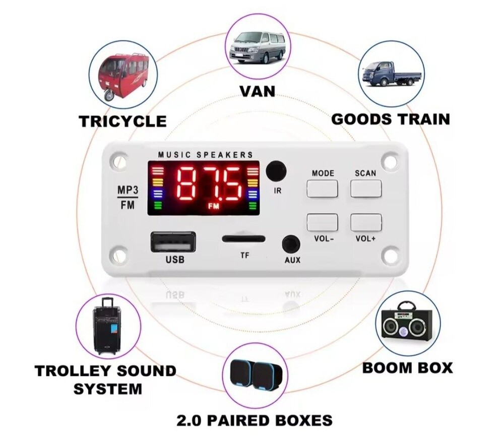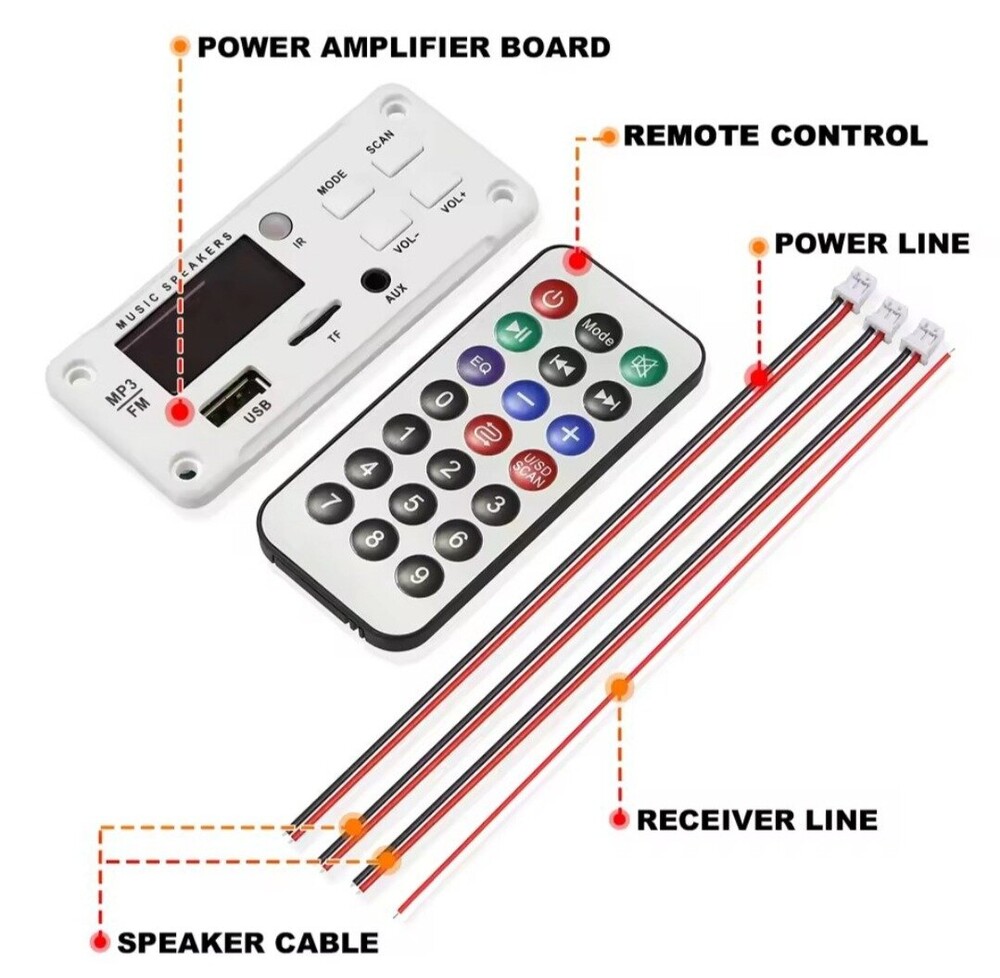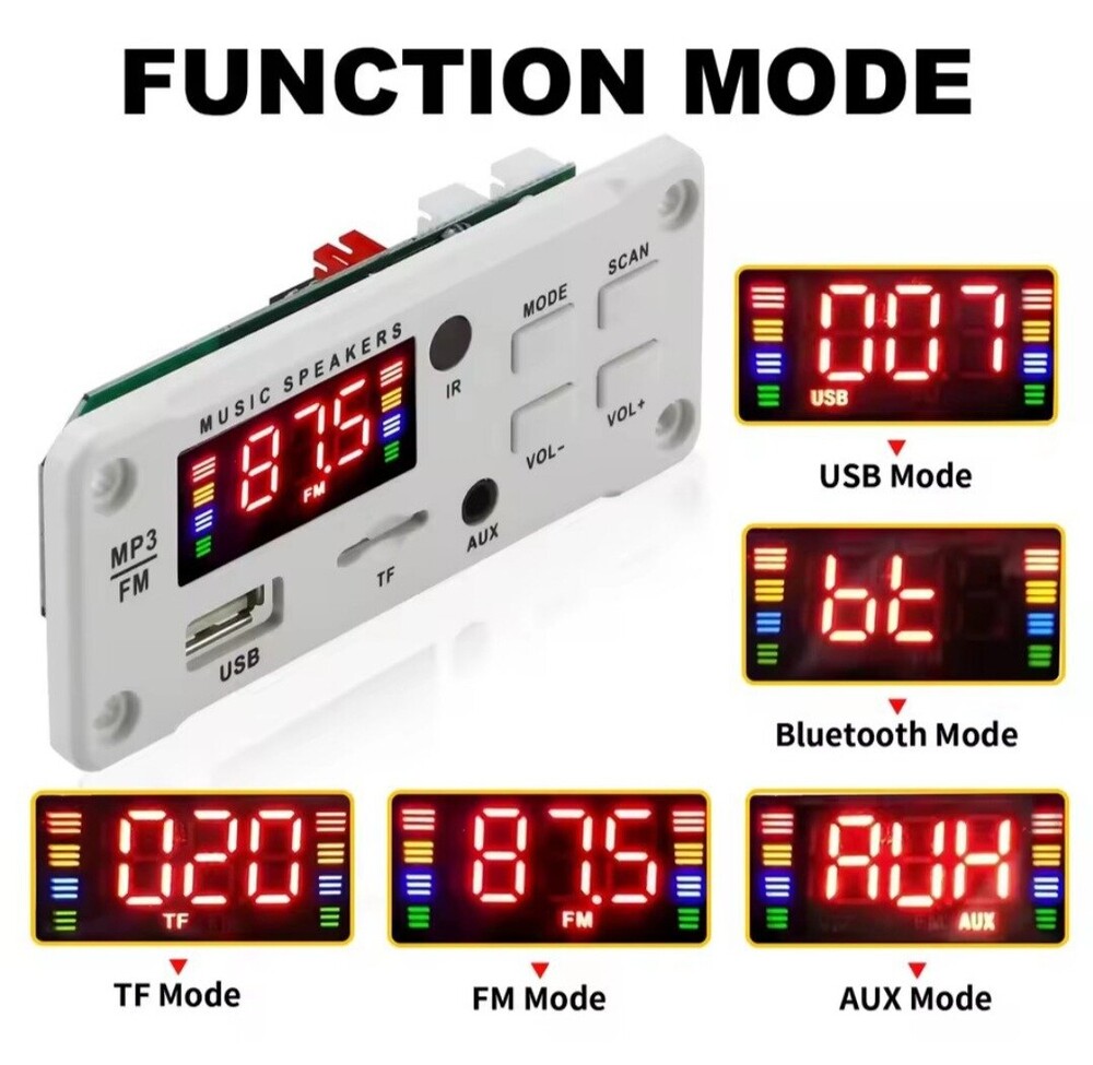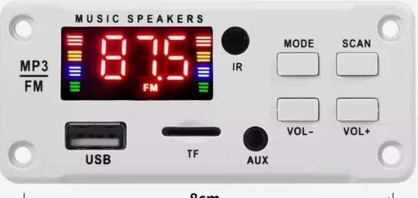 484464Підтримка форматів пісень MP3/WAV/WMA Режими: USB / TF / FM / LINE IN / BLUETOOTH 5.0 Вбудований підсилювач 50 Вт: 2 х 25 Вт (стерео, потужність реальна) Живлення: 11-16В Розмір: 92 х 41 мм Комплектація: Аудіоплеєр Пульт ДК Набір кабелів 484464 380₴ 1 шт.5 шт. Китай